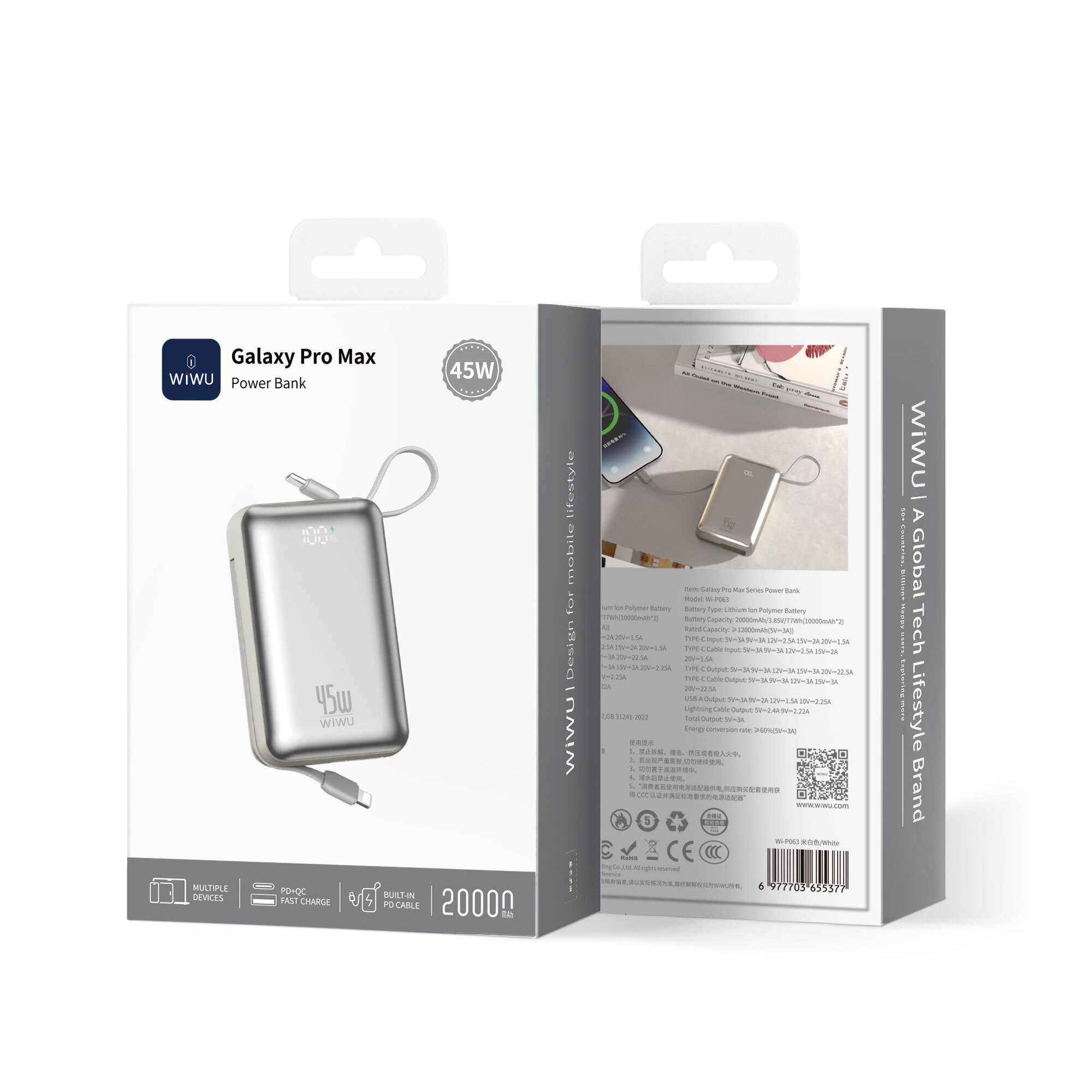 Wiwu AS-182 Galaxy Pro Max Serisi Type-C Lightning Çıkışlı Taşınabilir Powerbank PD 45W 20000mAh