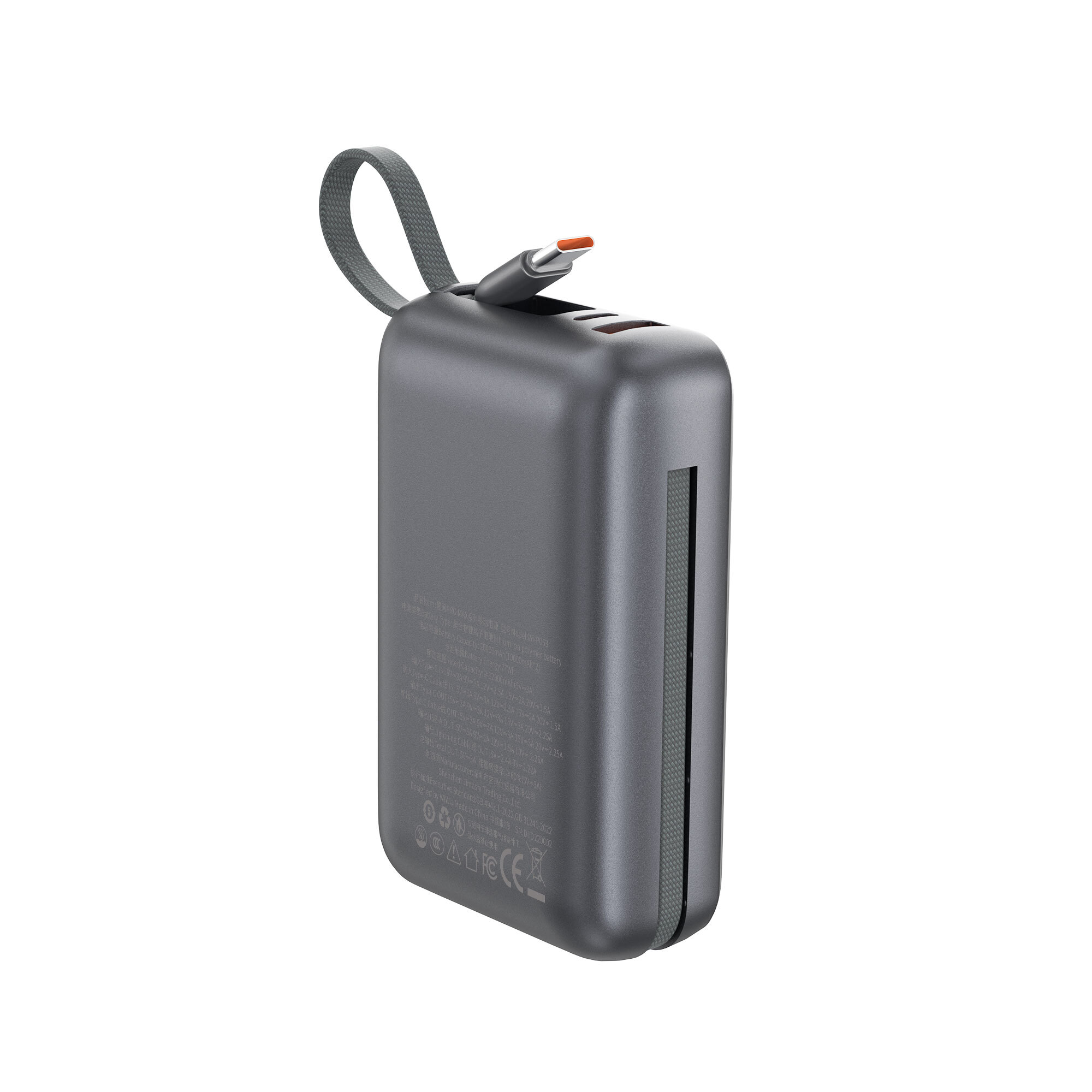 20000mAh kapasitesi ile akıllı telefonunuzu birden fazla kez şarj edebilir, tabletlerinize uzun süreli enerji sağlayabilirsiniz. Üzerinde entegre Type-C ve Lightning çıkış kabloları bulunduğu için ekstra kablo taşımanıza gerek kalmaz. Çantanızda, aracınızda ya da günlük kullanımda pratik ve düzenli bir çözüm sunar. LED dijital ekran sayesinde kalan pil yüzdesini net şekilde takip edebilirsiniz.
