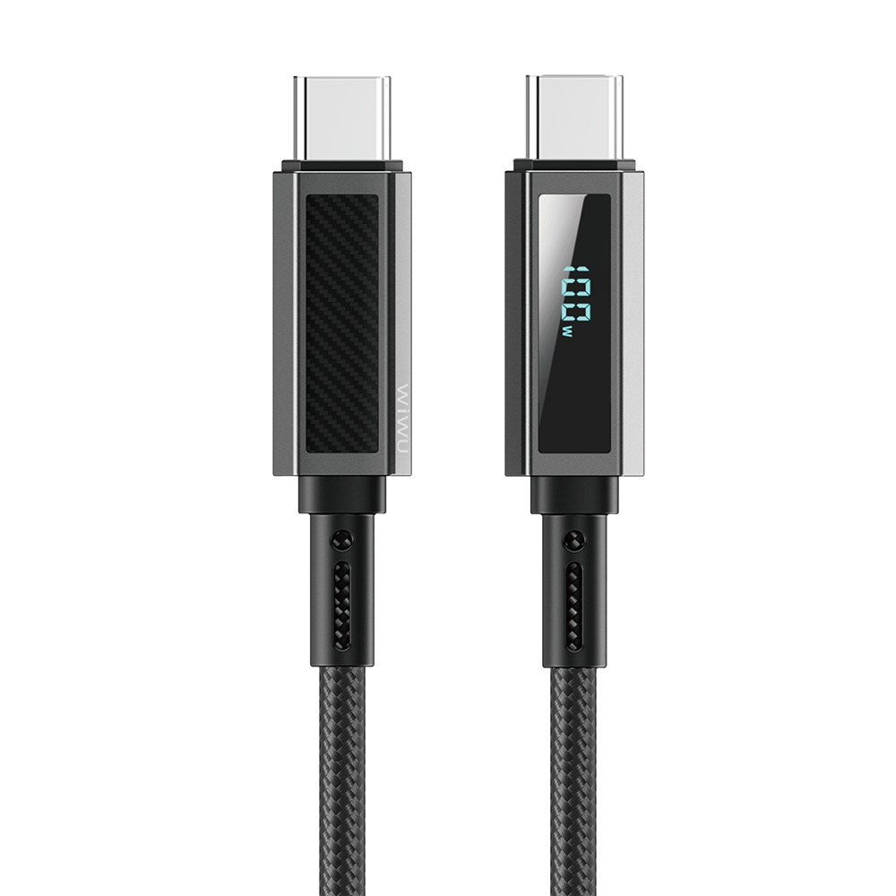 Wiwu Wi-C079 Warriors Serisi Aramid Fiber Dijital LED Göstergeli Type-C to Type-C PD Data ve Şarj Kablosu 100W 1.2M
