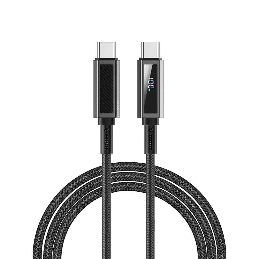 Wiwu Wi-C079 Warriors Serisi Aramid Fiber Dijital LED Göstergeli Type-C to Type-C PD Data ve Şarj Kablosu 100W 1.2M